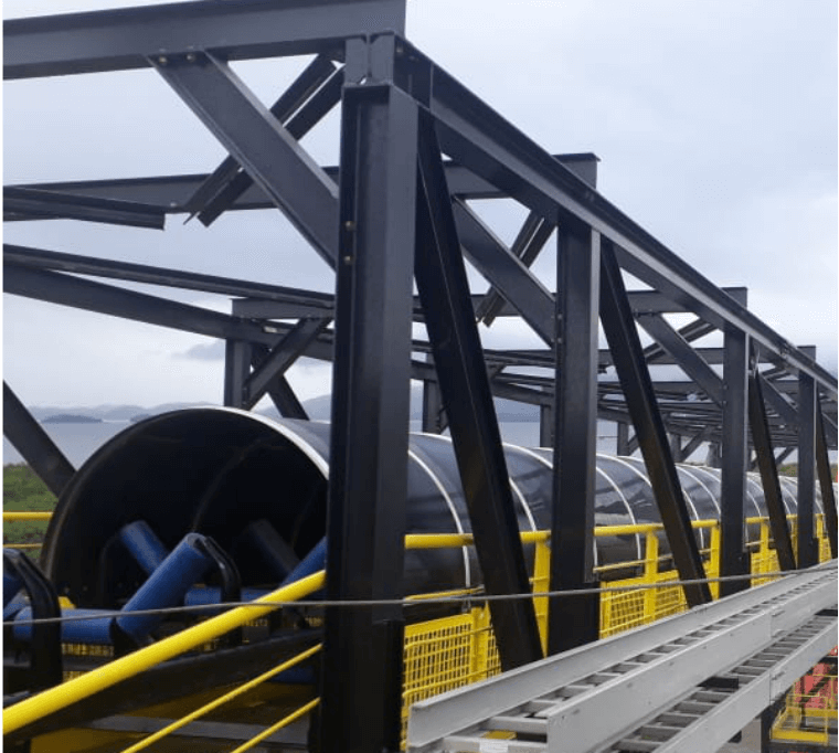 The towers, galleries and pillars ensure the safe circulation of people and support to equipment. They have access ladders, guardrails and protection screens, according to safety standards. The catwalks can be open or closed, and their finish is defined according to the installation environment.