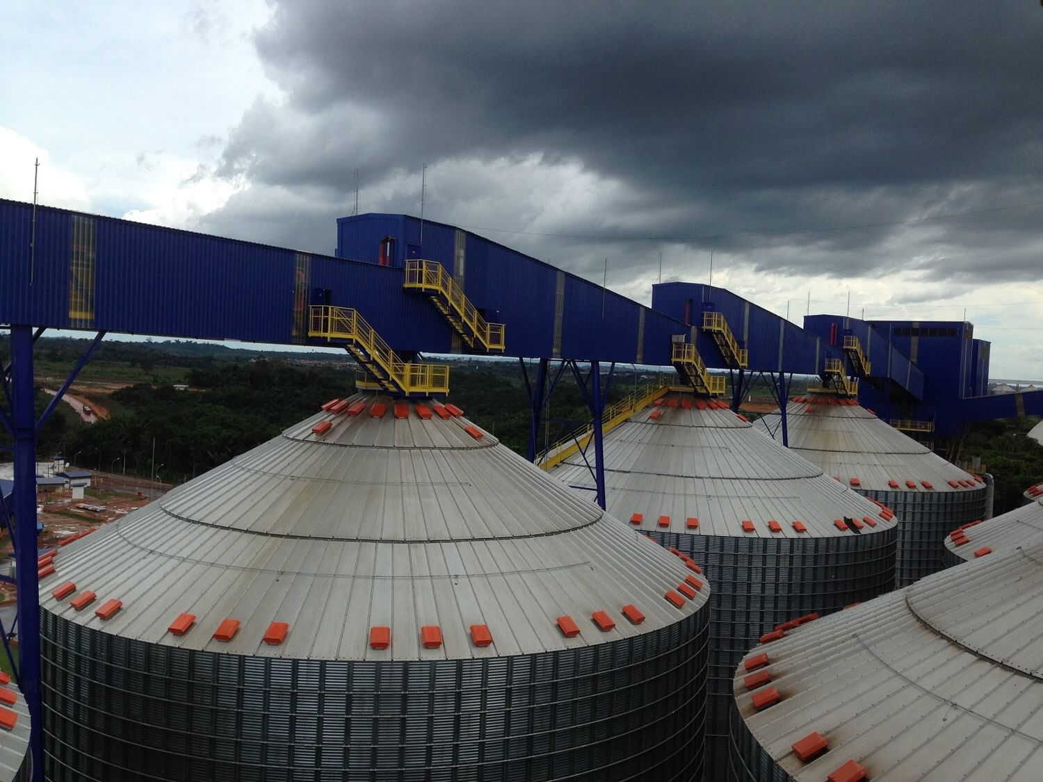 A linha de silos fundo plano possui como característica o baixo custo por tonelada armazenada, sendo a melhor opção para a armazenagem de grãos a longo período.