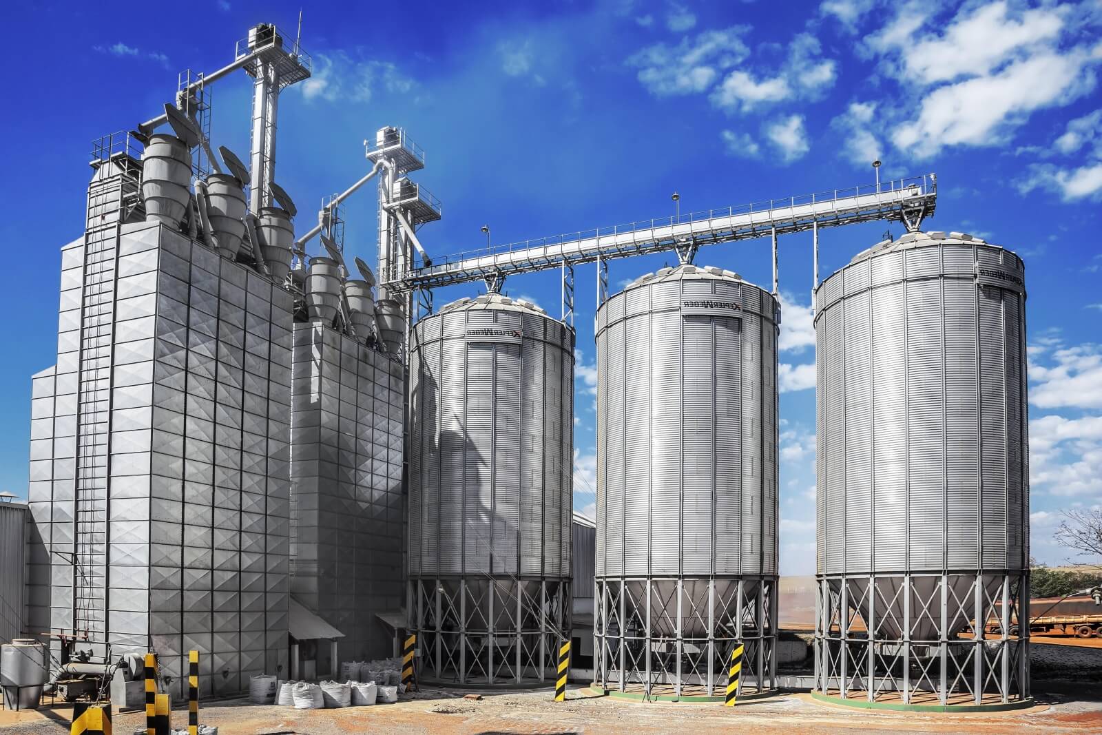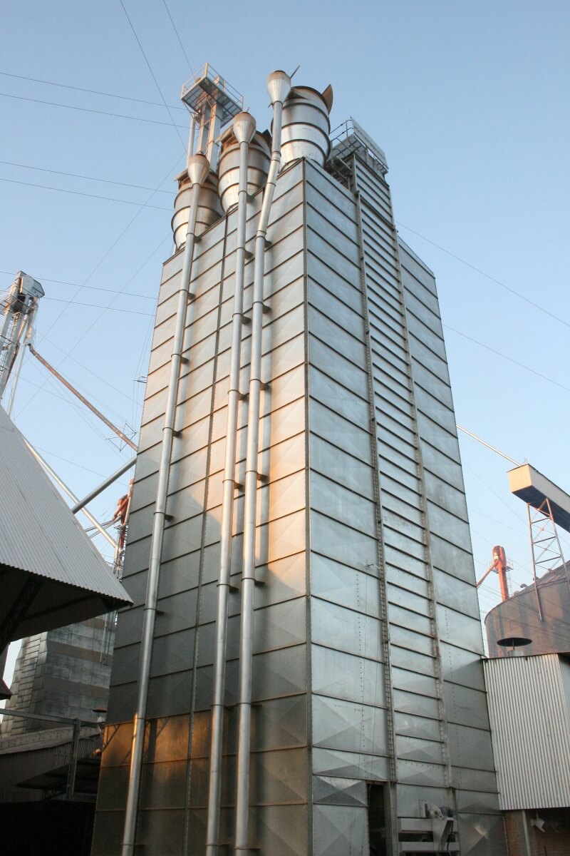 A linha de silos fundo plano possui como característica o baixo custo por tonelada armazenada, sendo a melhor opção para a armazenagem de grãos a longo período.